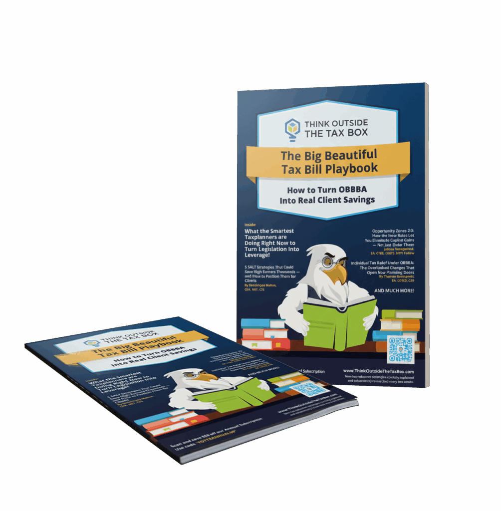 Think Outside the Tax Box proudly presents the 2025 Winter Education Series! This October through December, we are bringing our loyal subscribers five webinars featuring some of the brightest minds in tax. Each high quality webinar is filled with engaging content, actionable insights for your clients, and they all come